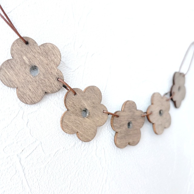 【即納】ナチュラルな木のお花ガーランド(くすみブラウン)
