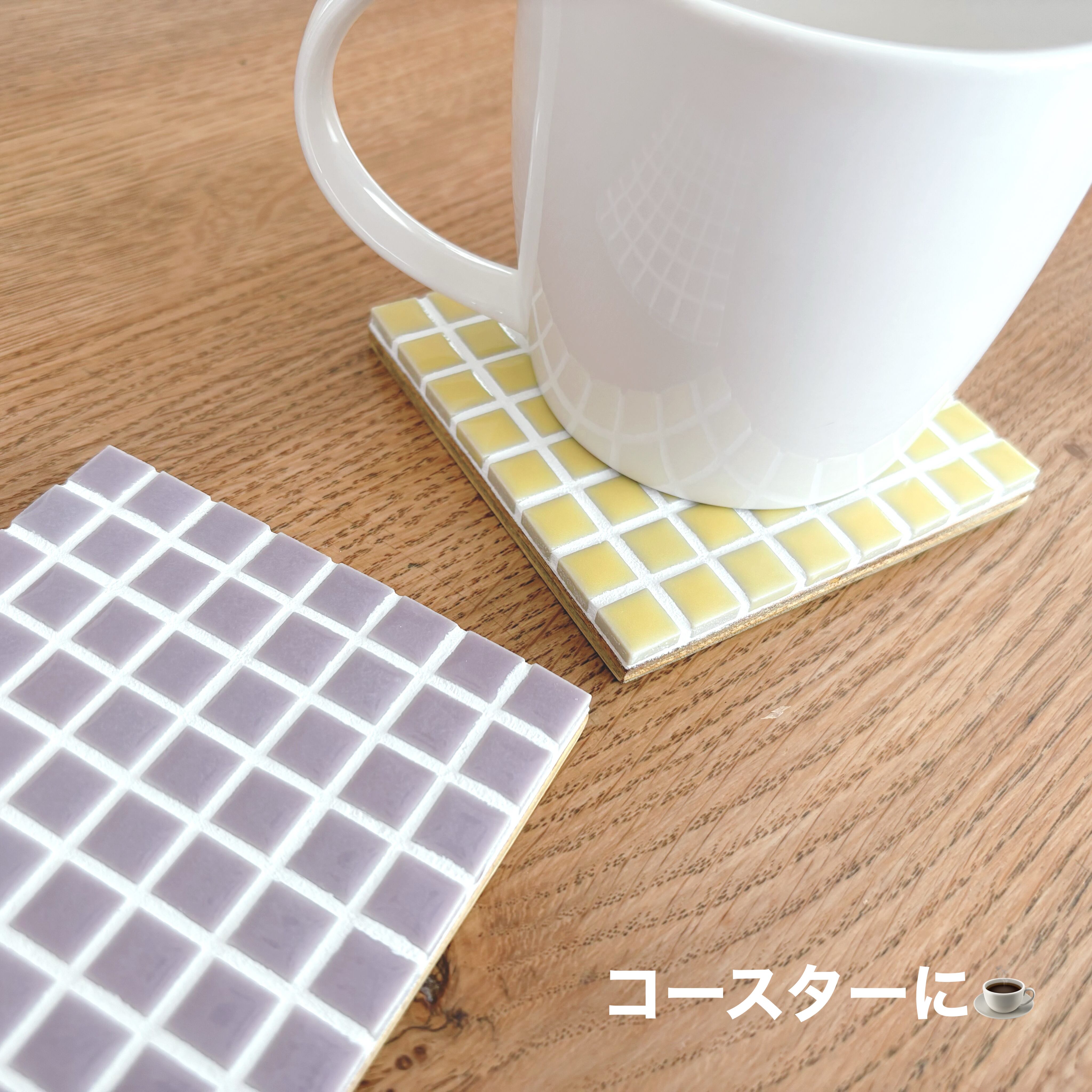 落ち着いた色味のタイルで作った、9色のコースターです。