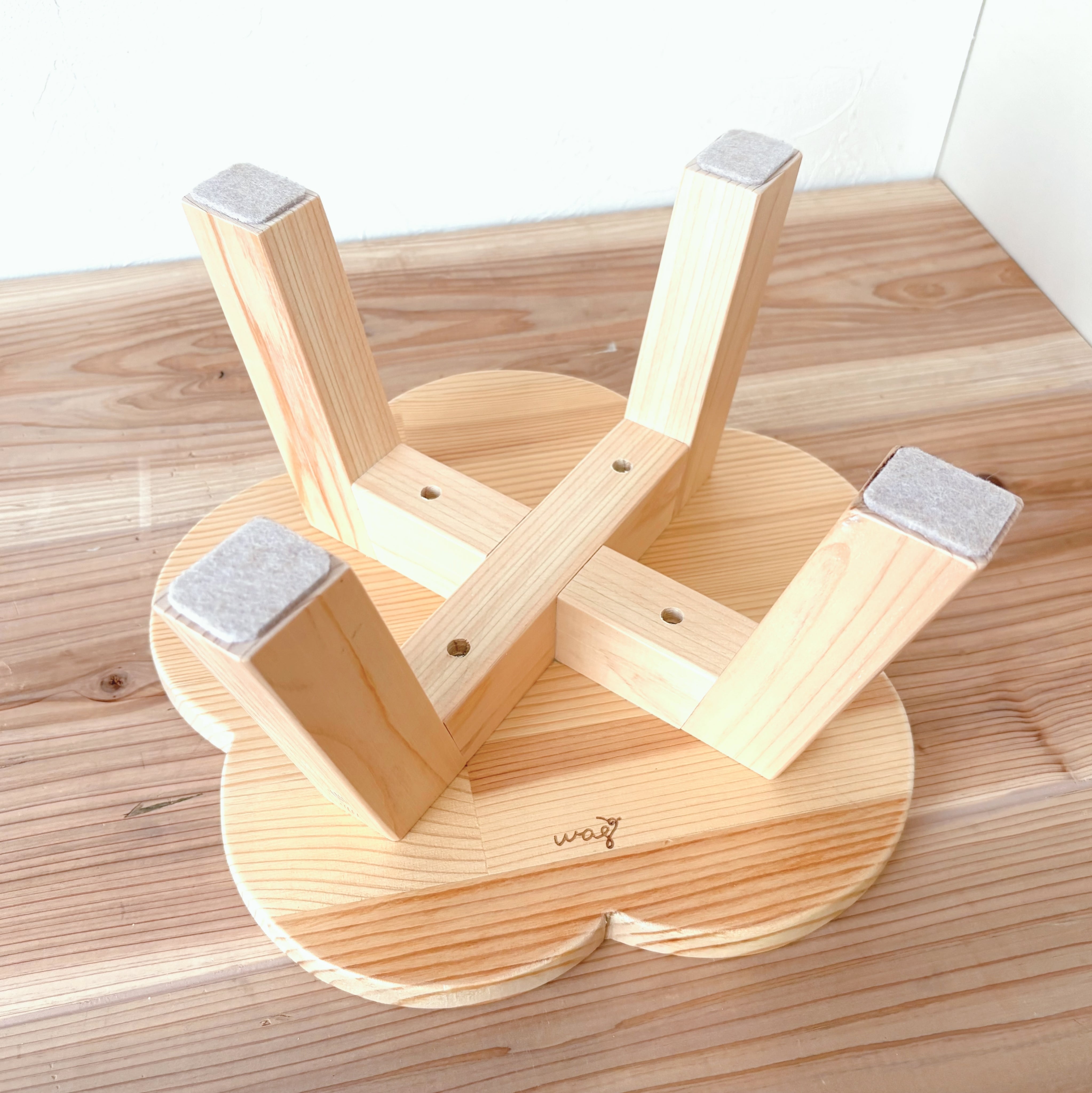 お花のかたちが可愛い、木製のディスプレイ台です。