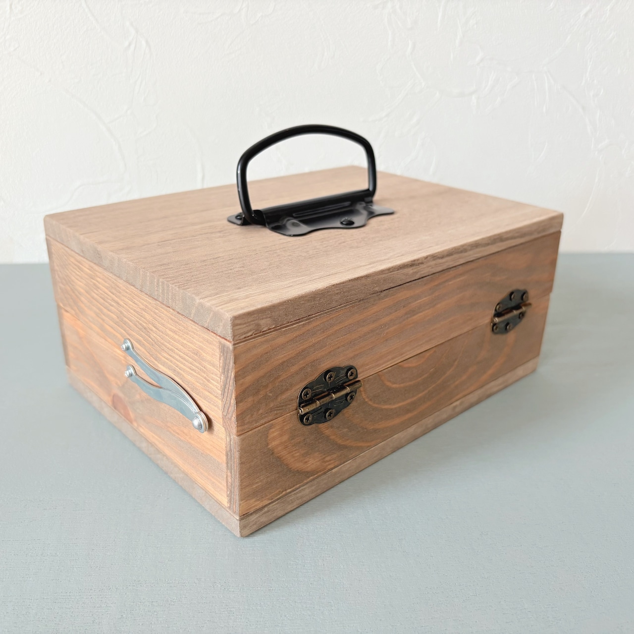 どこか懐かしさを感じる、木製の小さな収納箱です。